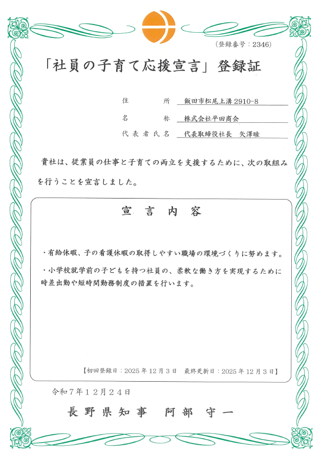 社員が仕事と家庭の両立ができるような「働きやすい職場環境づくり」に取り組むことを目的として宣言するものです。